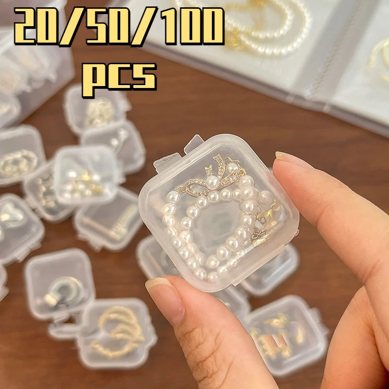 30/50/100pcs Mini Plastic Storage Box Square Transparent Portable Container Jewelry Holder Earrings Small Packaging Display Case