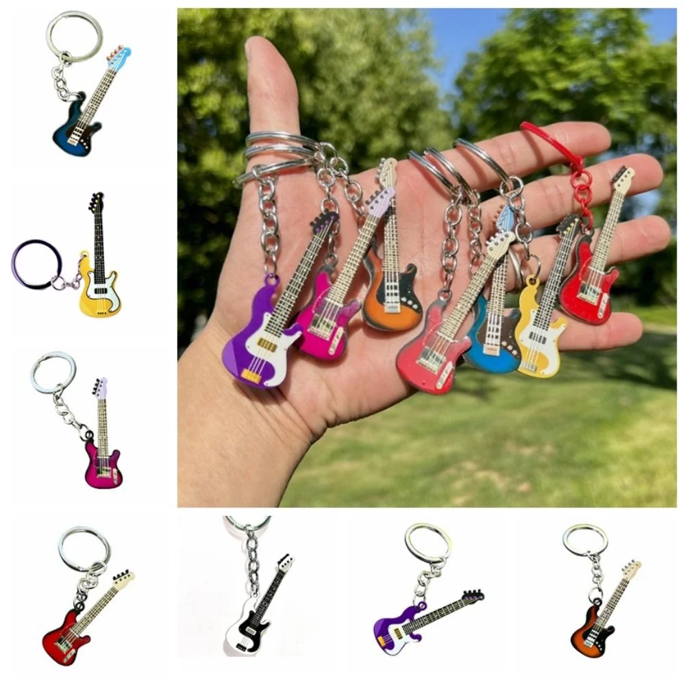 Jungloto Hip Hop Guitar Key Chain Key Chain Colorful Cool Guitar Keyring Metal Creative Musical Instrument Keychain Car Key Ornament
