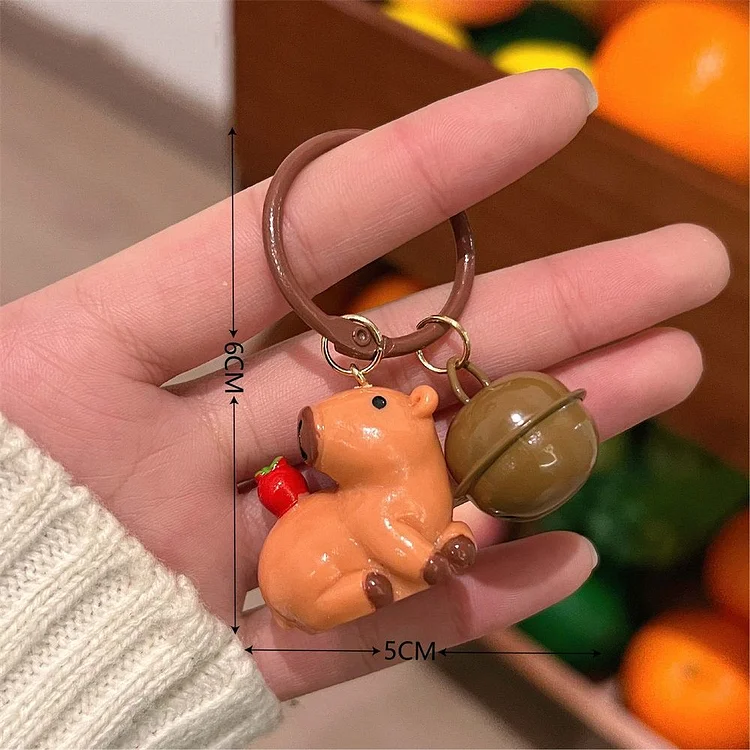 Key Cahin Capybara Keychain Creative Charms Small Bell Capybara Bag Pendant Resin Kawaii Cartoon Capybara Keyring Gifts