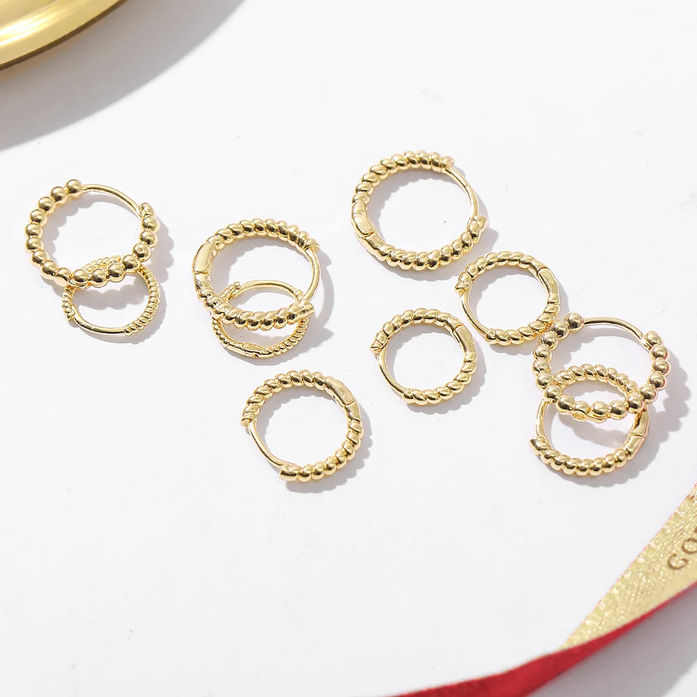 11mm-16mm Minimalist Round Circle Beaded Twisted Hoop Earrings for Women Fashion Small Huggies Ear Buckle Brincos 2023