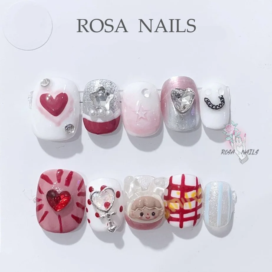 nails 10pcs + sticky tabs + cuticle stick + alcohol wipe + mini nail file.