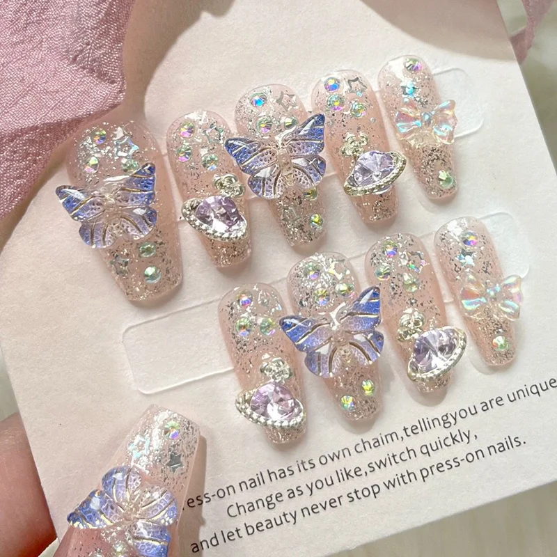 Feature:Our press on nails, strong, high quality, and rewearable for lifetime. Pretty and reusable!