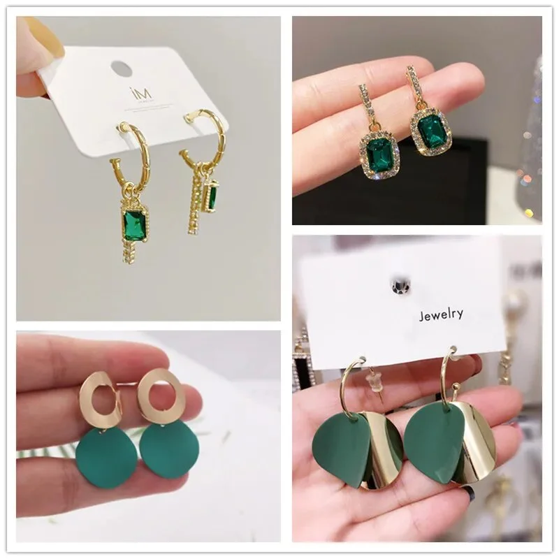 Green Color Hanging Earrinsg for Women Luxury Crystal Wedding Jewelry Imitation Pearl Drop Earrings new trend boucle oreille