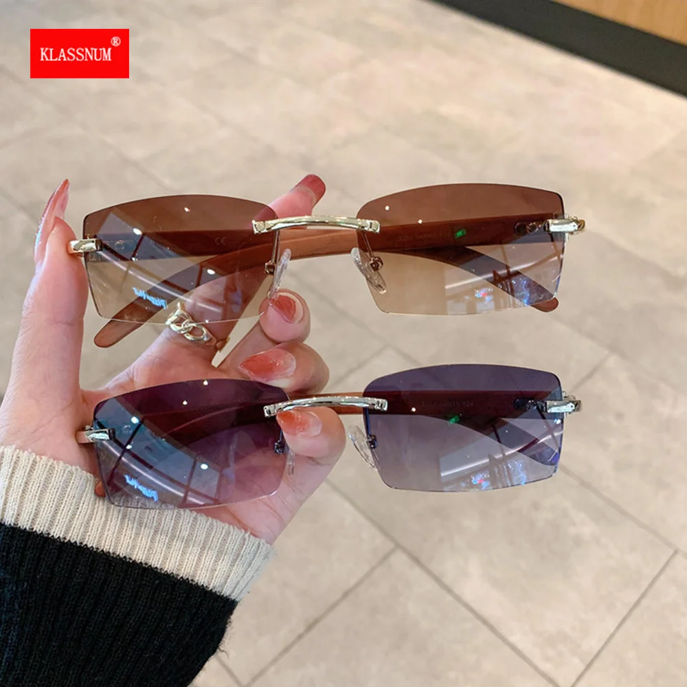 Rectangle Rimless Sunglasses Wooden Frame Eyewear Luxury Brand Design Women Men Small Square Sun Glasses Female Male Traveling Oculos