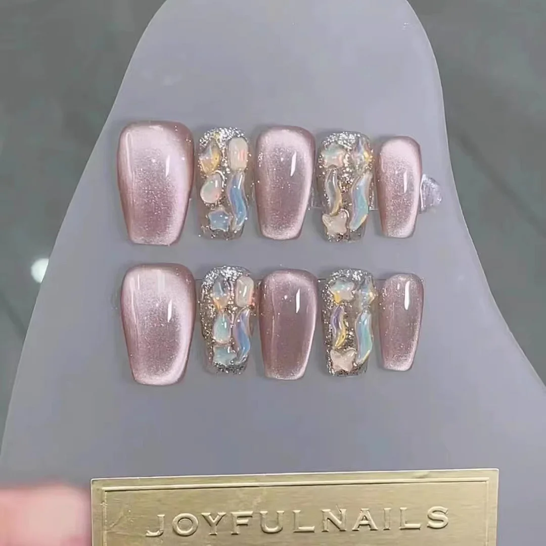 Jasmine scented pink diamond handmade manicure nails pink light luxury cat eye cute high-end short style sweet