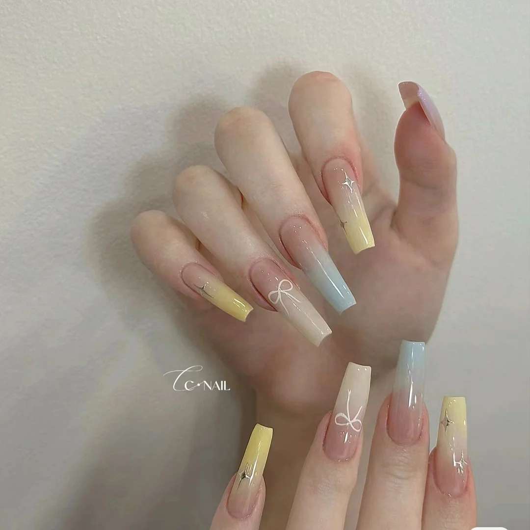 Joystickhouse 10Pcs Summer Long Handmade Press On Nails Full Cover Colorful Design French False Nails Wearable Manicure Nail Tips Nail stickers