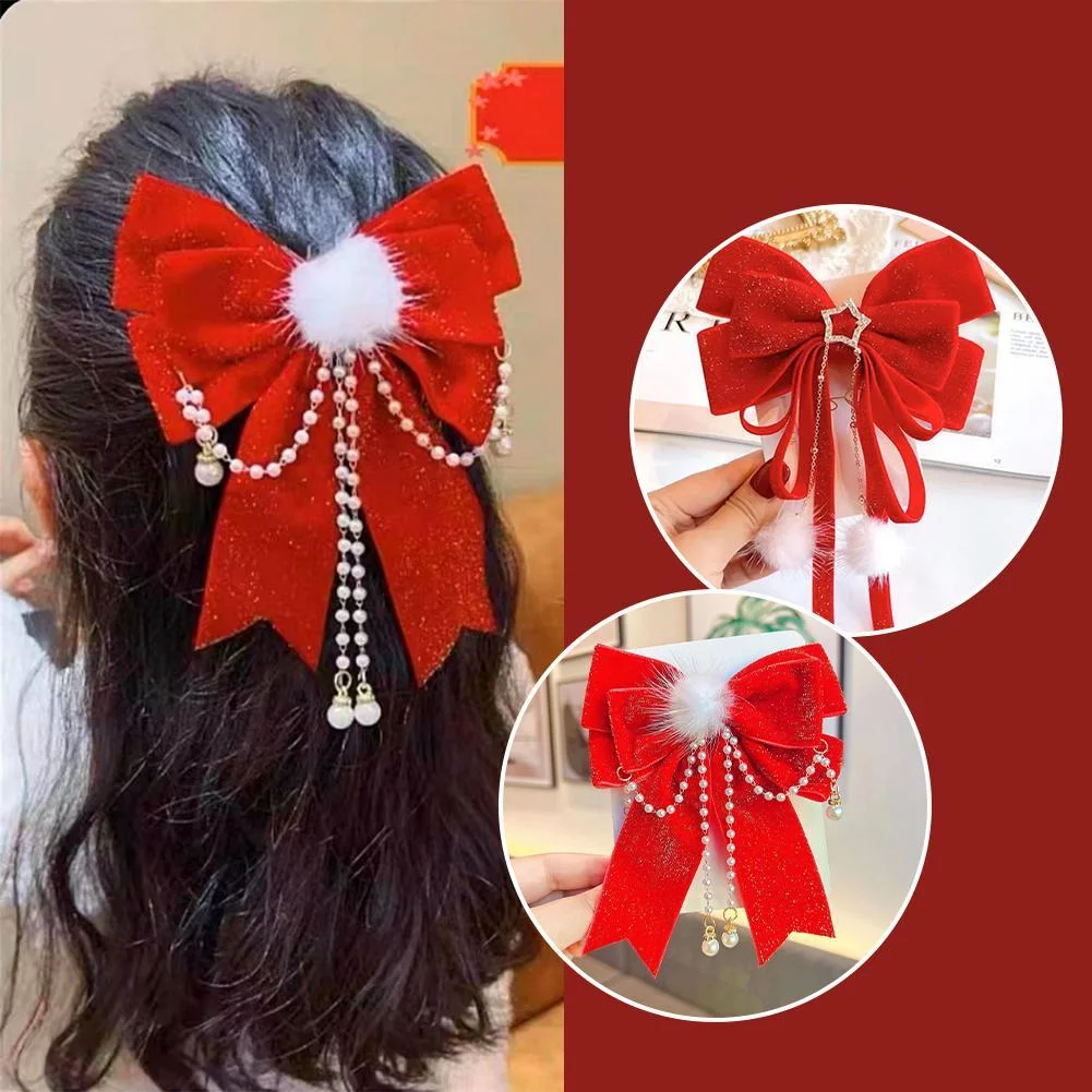 1. Antique design: This New Years red bow tassel hair accessory incorporates elements of ancient Hanfu, adding a classic flavor to girls hairstyles. The design of bows and tassels makes the hair accessories more elegant and charming, suitable for matching with various ancient Hanfu or other festival costumes.