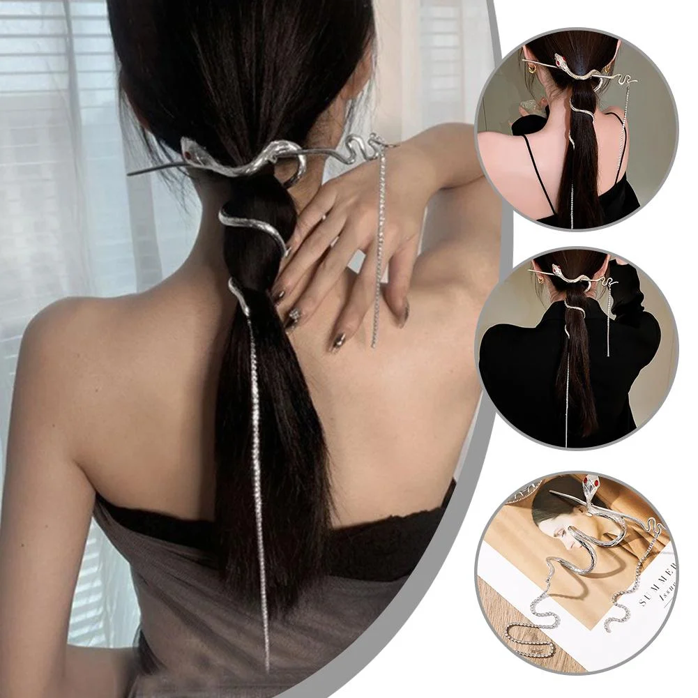 1. Exquisite design: This snake-shaped diamond-encrusted tassel hairpin adopts an exquisite design, combining the snake shape with diamond-encrusted elements to show a unique sense of fashion. The addition of fringes adds a dynamic and elegant vibe, making your hairstyle even more eye-catching.