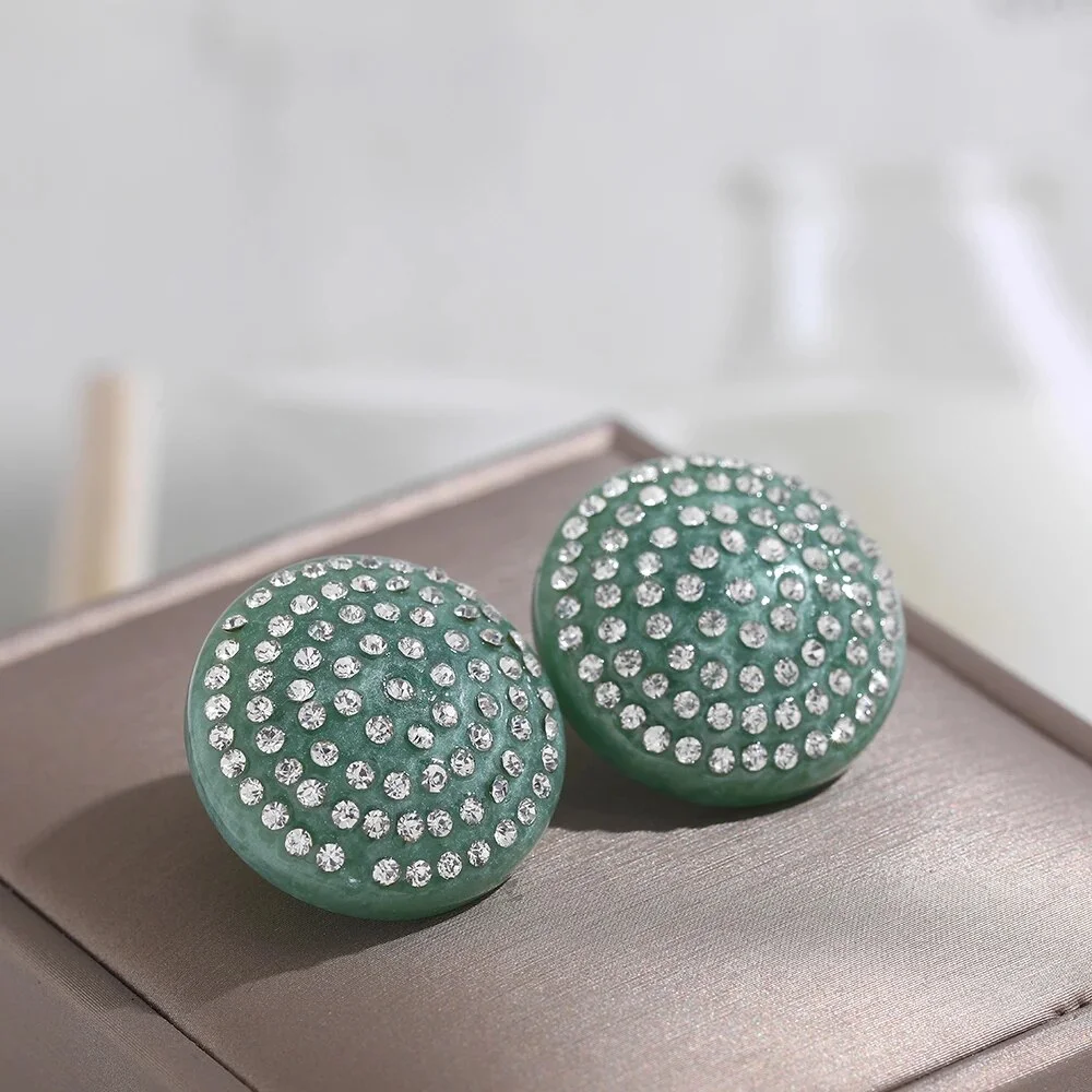 Back Finding : Push-back Model Number : 20973 Style : TRENDY Gender : Women Material : resin Shape\pattern : Round Metals Type : Zinc alloy Earring Type : Stud Earrings Item Type : Earrings Fine or Fashion : Fashion Color : Green Color New Trend : Resin Flat Round Ear Studs Occasion : Party/Wedding