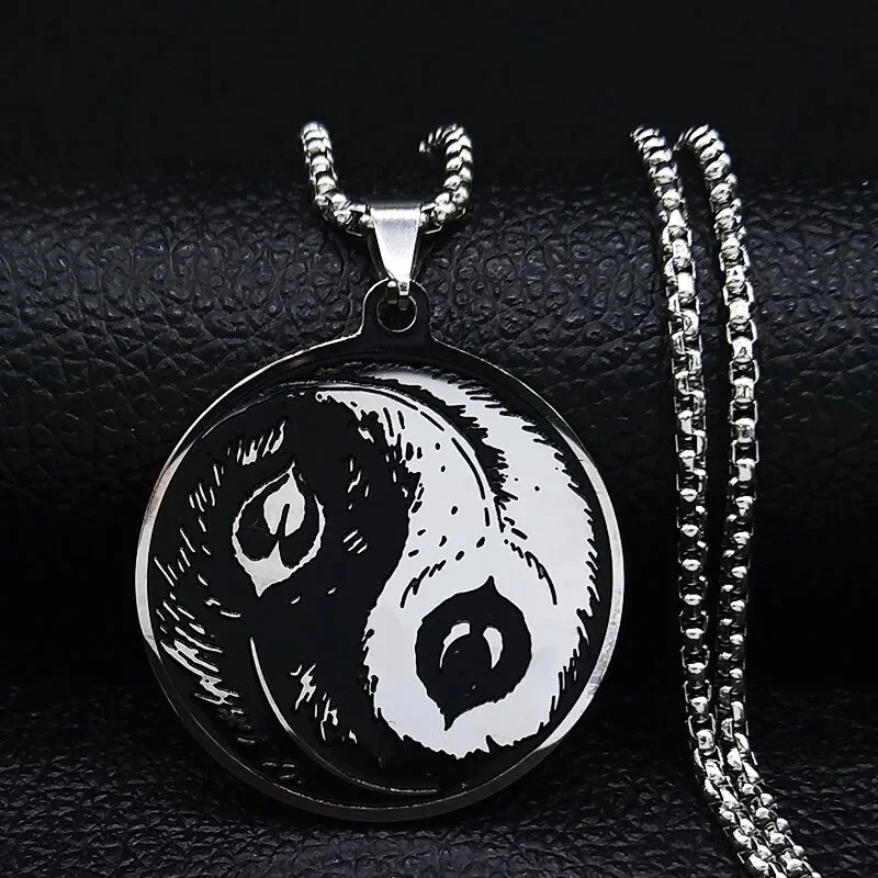 Tai Chi Yin Yang Gossip Feather Stainless Steel Chain Necklace Men Silver Color Necklace Jewelry Gift collares