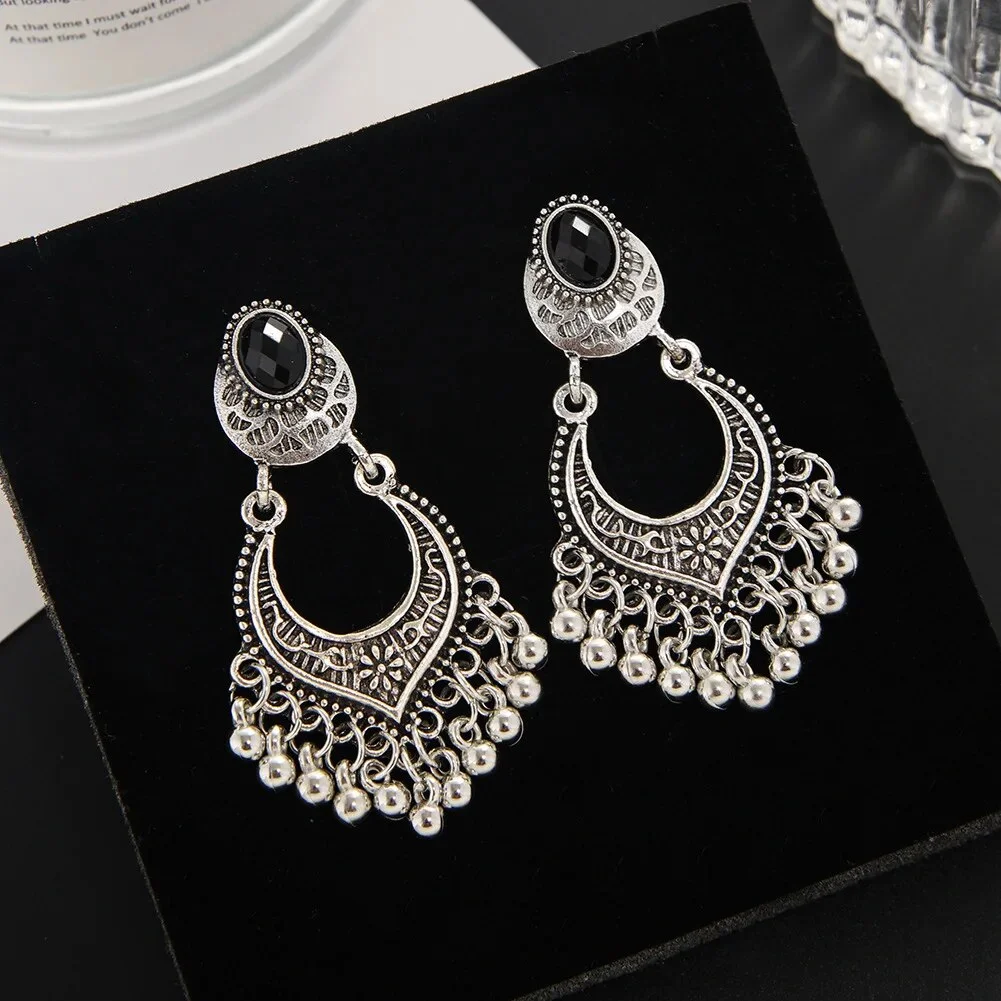 Vintage Ethnic Bohemian Drop Dangle Earrings For Women Ball Tassel Metal Beaded Geometric Oval Flower Hollow Statement Earrings